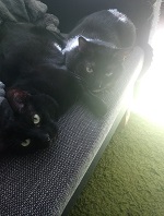 As soon as I had put the treats somewhere, one of the cats came and carried the bag of treats to his "hiding place".
